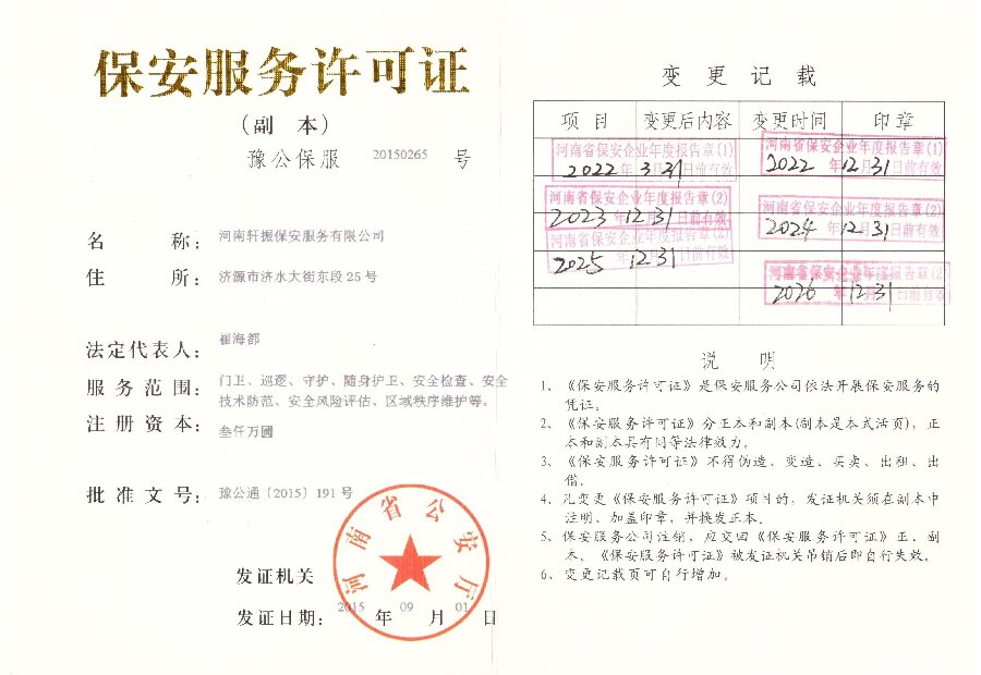 保安服务许可证副本