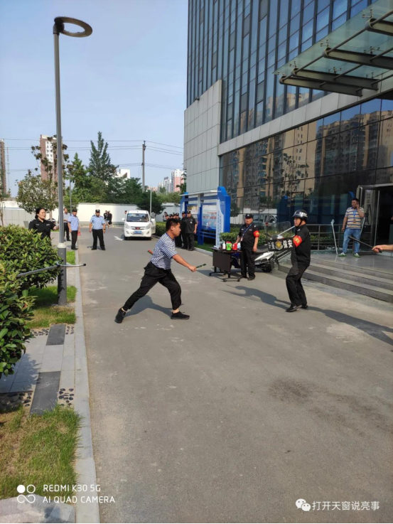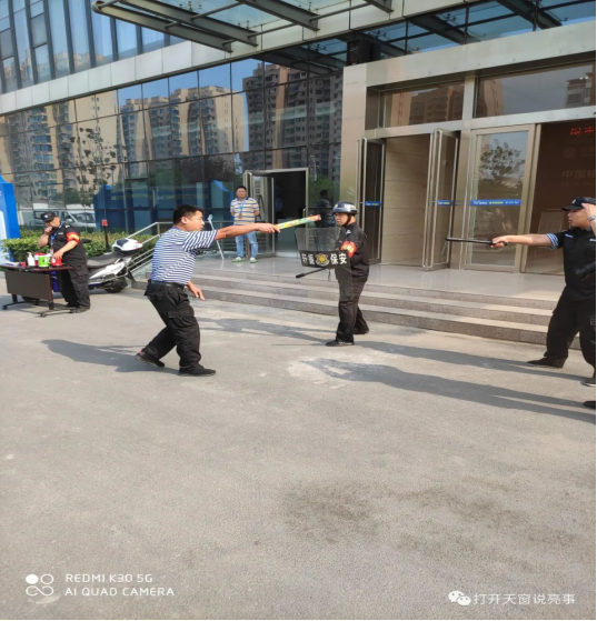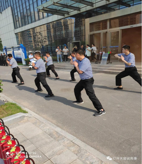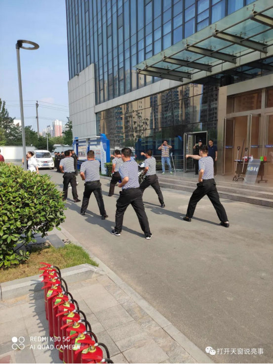 紧接着几名年轻的小伙子表演了军体拳,他们步调一致,斗志昂扬,充分体现了保安队员的豪情壮志。