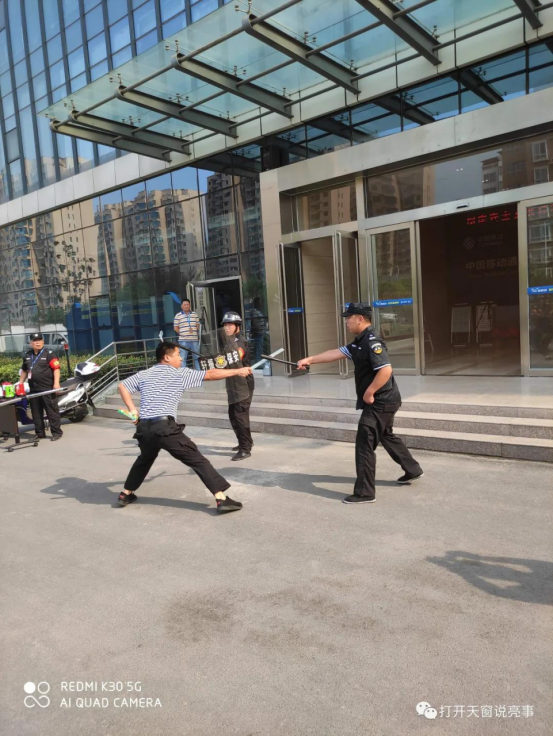 下午三点许,骄阳似火,大地如蒸。公司大院安然无恙。突然,一名年轻歹徒手持棍棒,气势汹汹的狂啸着窜进大院,直奔办公楼。值班员拉响警报后,几名保安闻警出动,手持警棒钢钗与歹徒迎面而战。年轻的歹徒看来有点拳脚功夫,根本不把保安放在眼里,横冲直闯朝办公楼而去。保安人员临危不惧,视责任如生命,与歹徒展开殊死搏斗。棍棒声声,刀光闪闪,十几个回合将歹徒凶器击落。一名身强力壮的保安一个箭步冲上,将歹徒扑倒,另一名保安手持钢钗死死卡住歹徒的腰部,几名保安一涌而上将歹徒双臂反锁,歹徒乖乖的被制伏了。