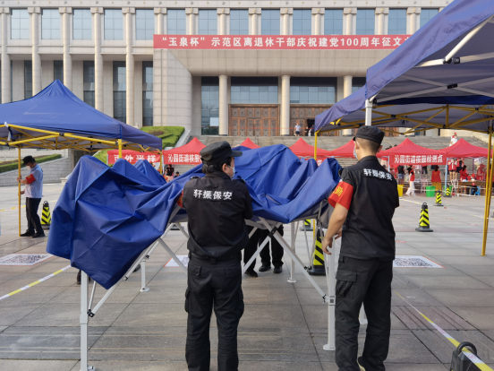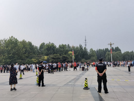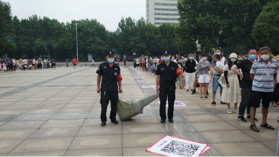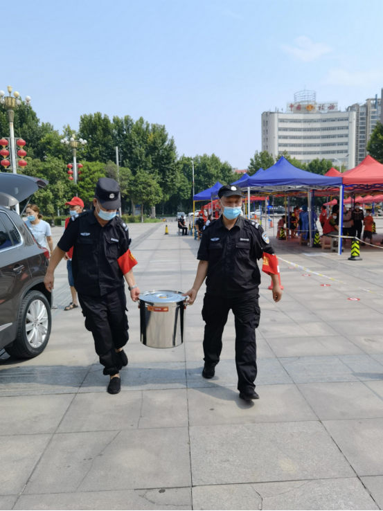 8月7日至8日,济源市沁园办事处按照全市统一部署,迅速启动全民核酸检测工作。河南轩振保安服务有限公司出动保安400余人次,顶着30多度的高温为辖区核酸检测点保驾护航。