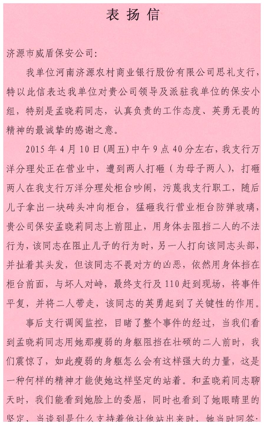 表扬信